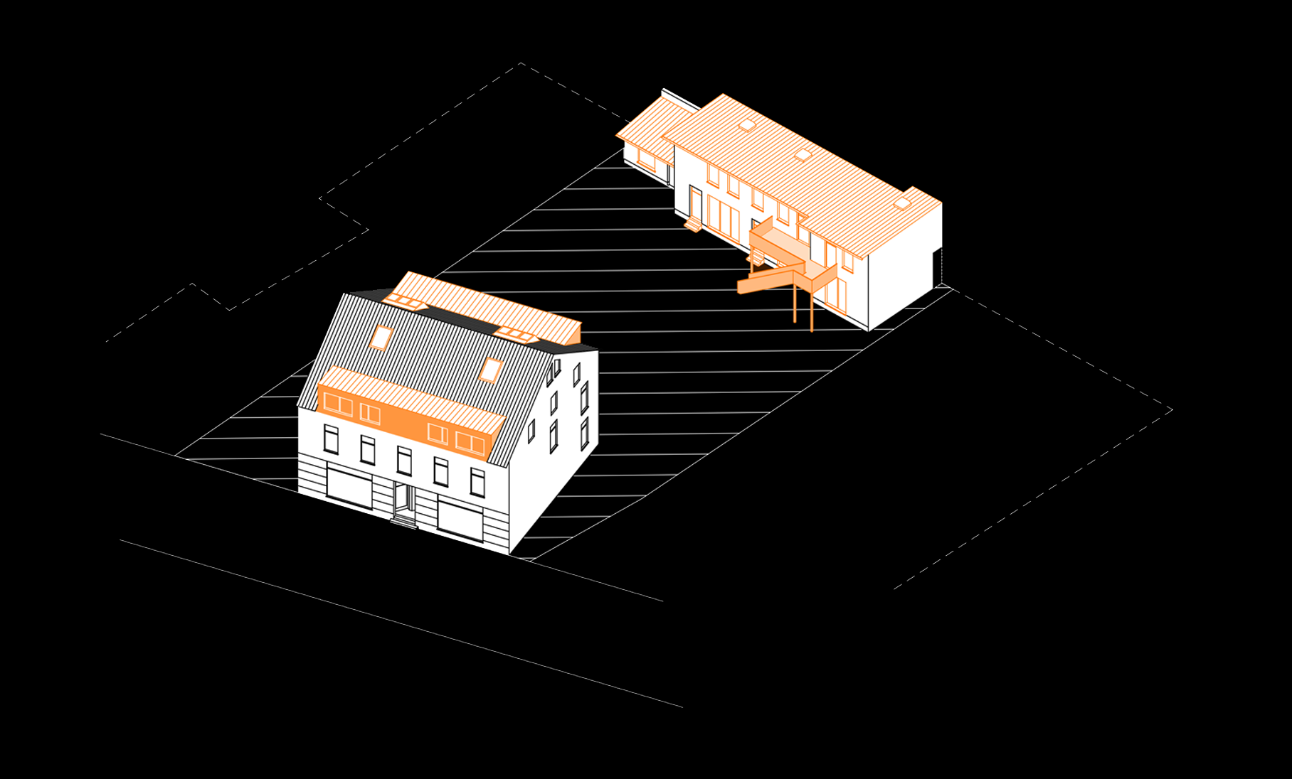 Aktuell finden 70-80% der Bautätigkeit im Bestand statt - Mitarbeiten, Reparieren, Nutzen und Erweitern. Das gilt es zukünftig zu etablieren. Daraus resultiert das die bestehende Infrastruktur effizienter genutzt werden sollte. Aus Umnutzung und Nachverdichtung wird Raum für Vielfalt, Robustheit und Kompaktheit. Daraus bilden sich als Folge Hybridgebäude mit unterschiedlichsten Nutzungen - kurze Wege, Multifunktionalität, räumlich kompakt, sozial und kulturell.
