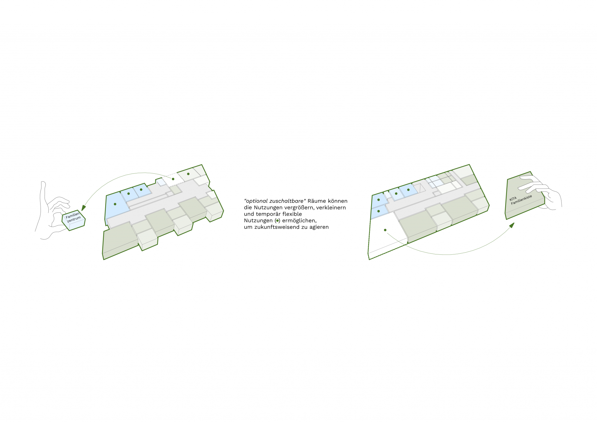 Flexible Raumstrukturen erlauben zukünftige Erweiterungen ohne großen baulichen Aufwand und sichern langfristig die Anpassungsfähigkeit des Gebäudes. Geplant in nachhaltiger Holzbauweise verbindet der Stützpunkt hohe Energieeffizienz mit einem angenehmen Raumklima. Geothermie, Photovoltaik, begrünte Dächer sowie intelligente Lüftungs- und Kühlkonzepte reduzieren den Energiebedarf und gewährleisten ganzjährig optimalen Komfort.